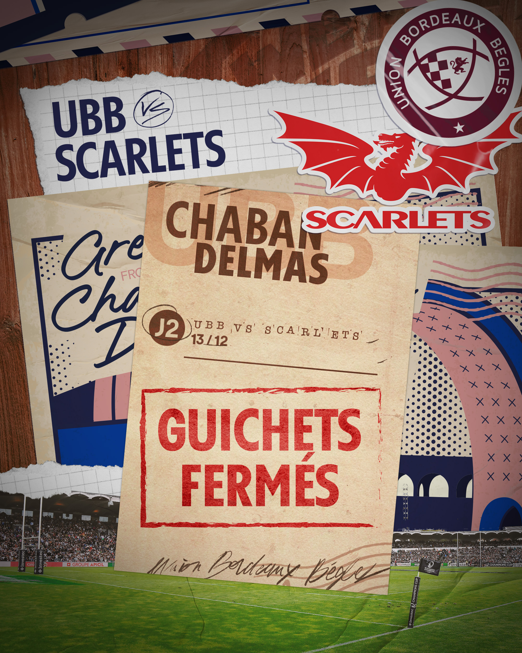 On continue ! 23e guichets fermés d'affilé pour l'UBB qui recevra les Scarlets à l'occasion de la deuxième journée de Champions Cup, ce samedi à Chaban.