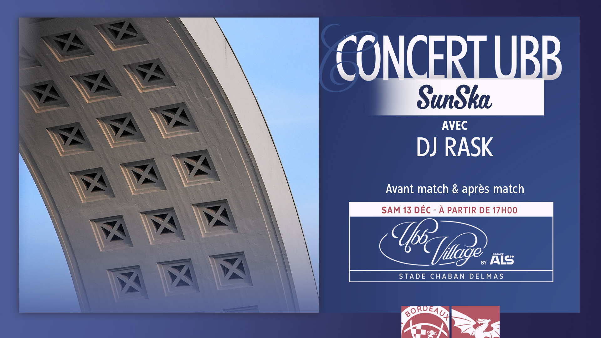 Pour cette rencontre l'UBB invite le festival SunSka avec DJ Rask au village UBB by ALS.