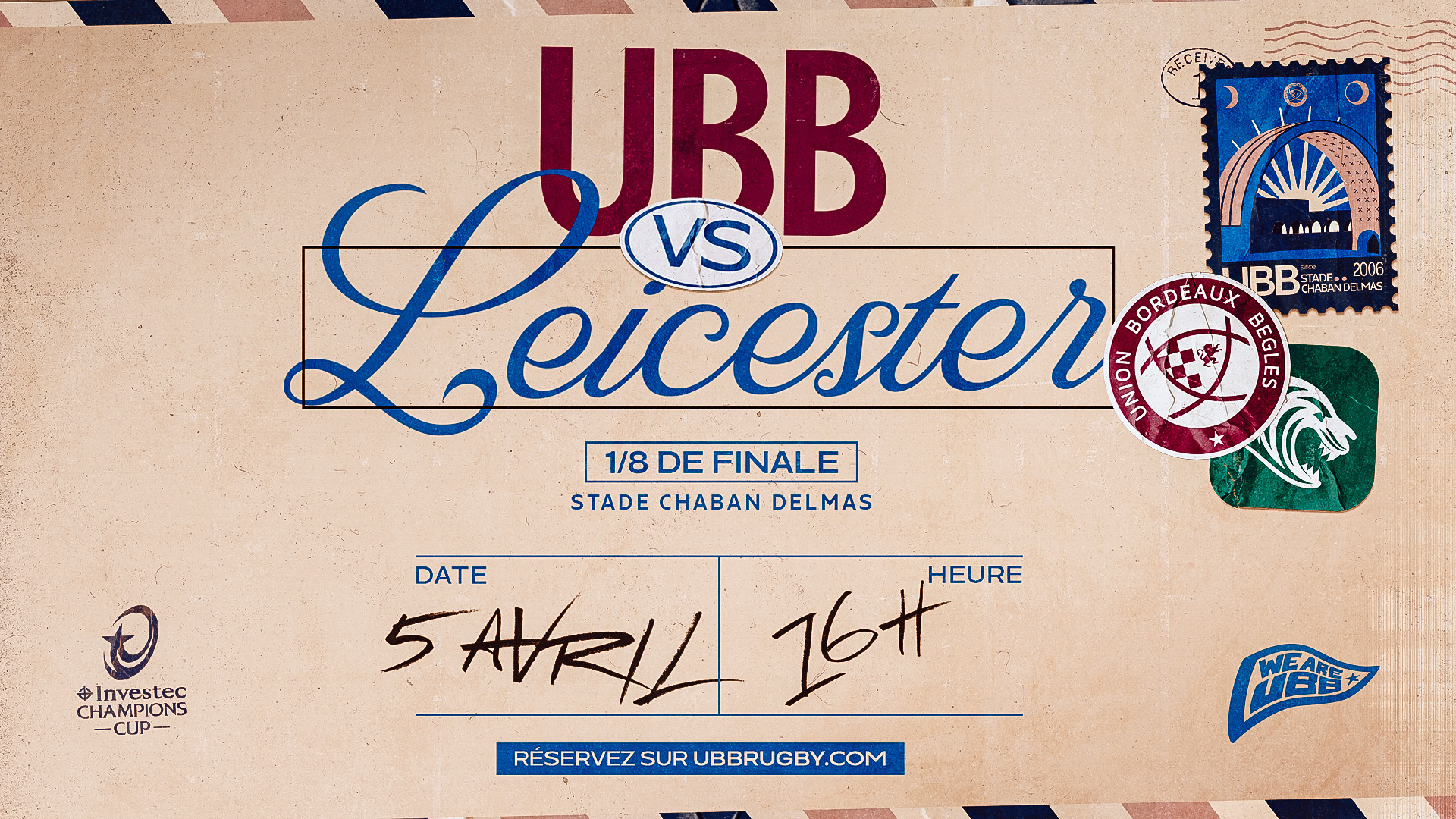 La billetterie est désormais ouverte pour le 8e de finale d'Investec Champions Cup face aux Leicester Tigers à Chaban ! Réservez vite vos places pour cette première rencontre de phase finale de la saison.