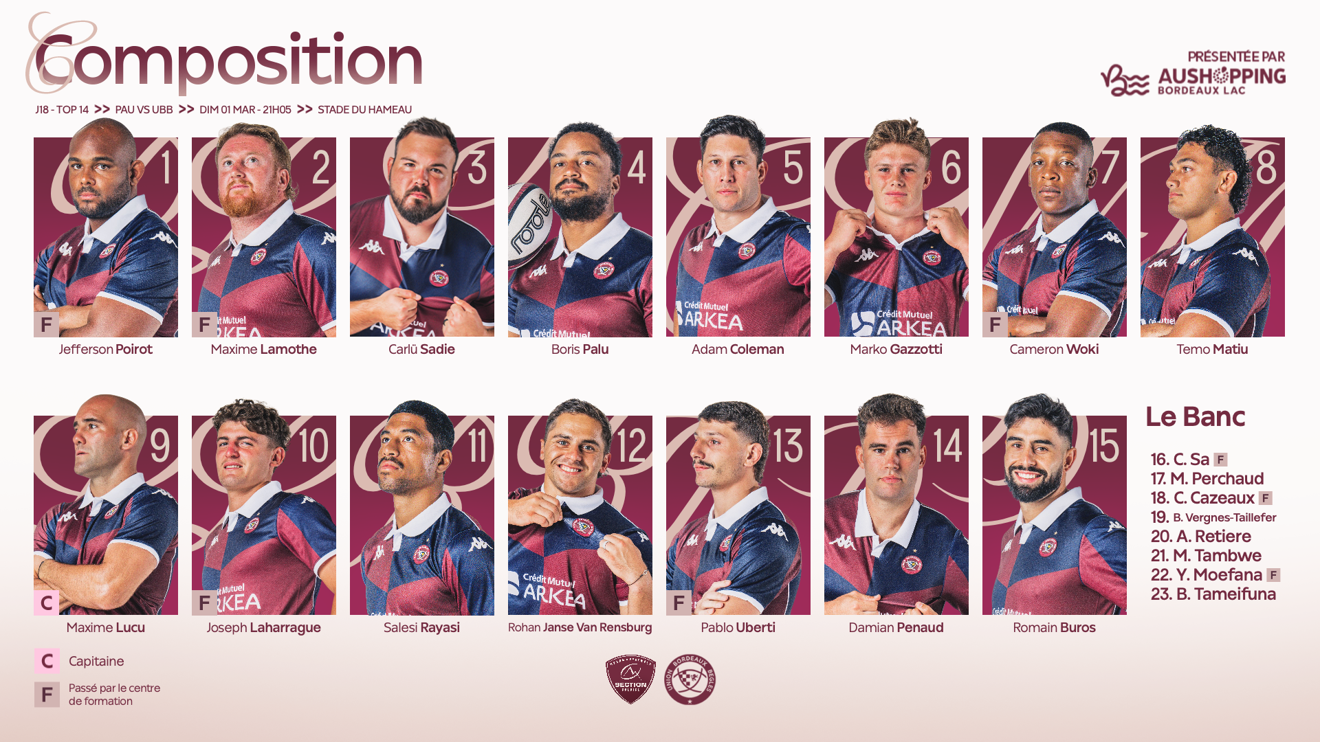 Pour rappel l'UBB est "privée" de 2 joueurs "protégés" par le staff de l'équipe de France : M. Jalibert et L. Bielle-Biarrey.