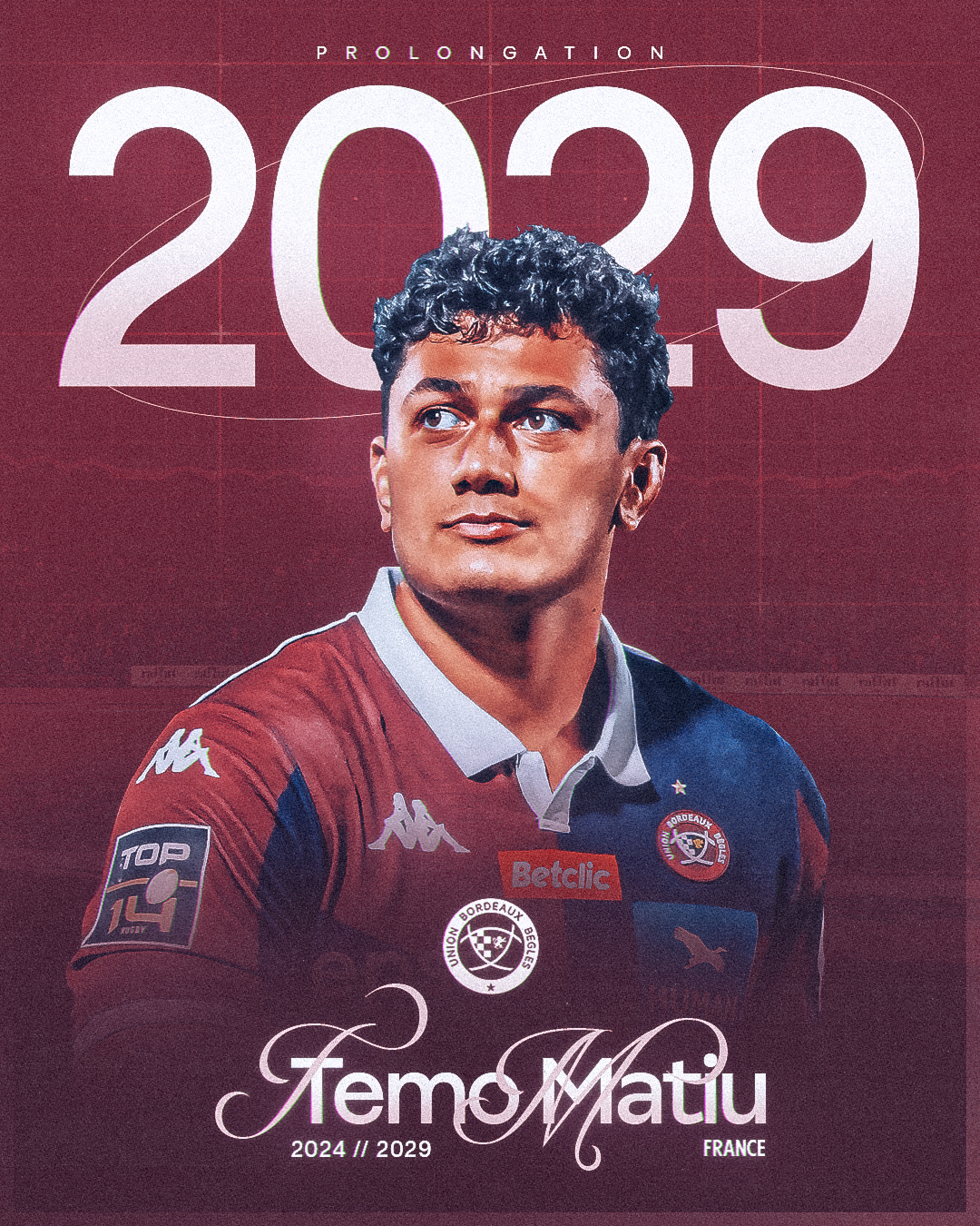 Notre jeune troisième ligne Temo Matiu prolonge son aventure à l'UBB jusqu’en 2029 !