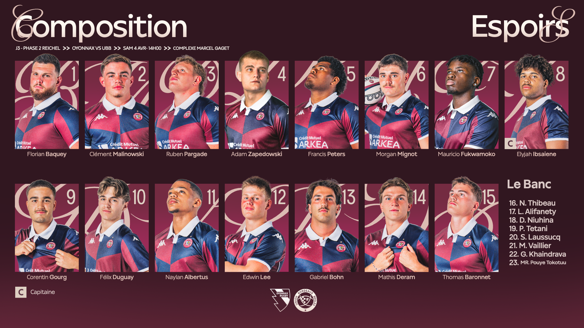 • Elyjah Ibsaiene revient avec les Espoirs au poste de numéro 8, et Mauricio Fukwamoko est positionné à l’aile gauche.