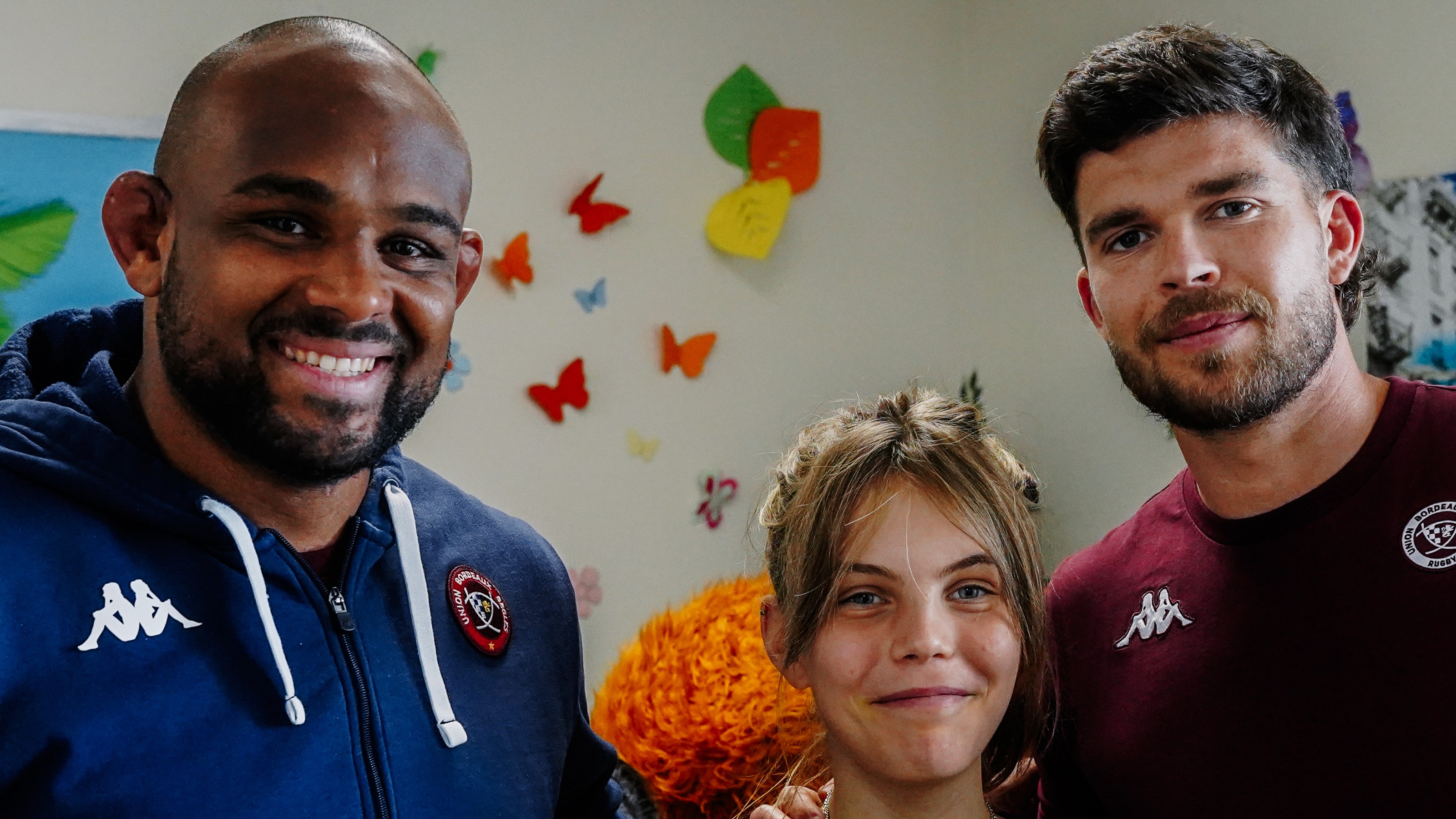 Partage et sourires à l'hôpital Jean Abadie. Quand Matthieu Jalibert et Jefferson Poirot rendent visite aux jeunes patients hospitalisés.