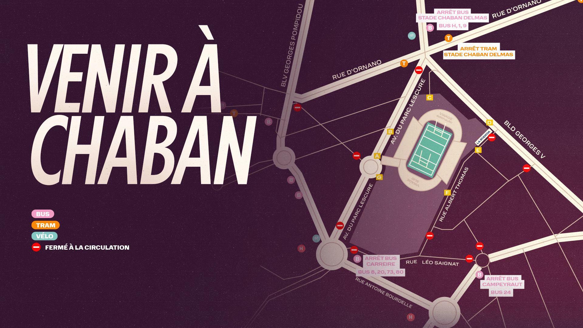 Découvrez les différents moyens de locomotion pour vous rendre au stade les jours de match. Privilégiez la mobilité douce, car les places de stationnement aux abords de Chaban sont peu nombreuses.