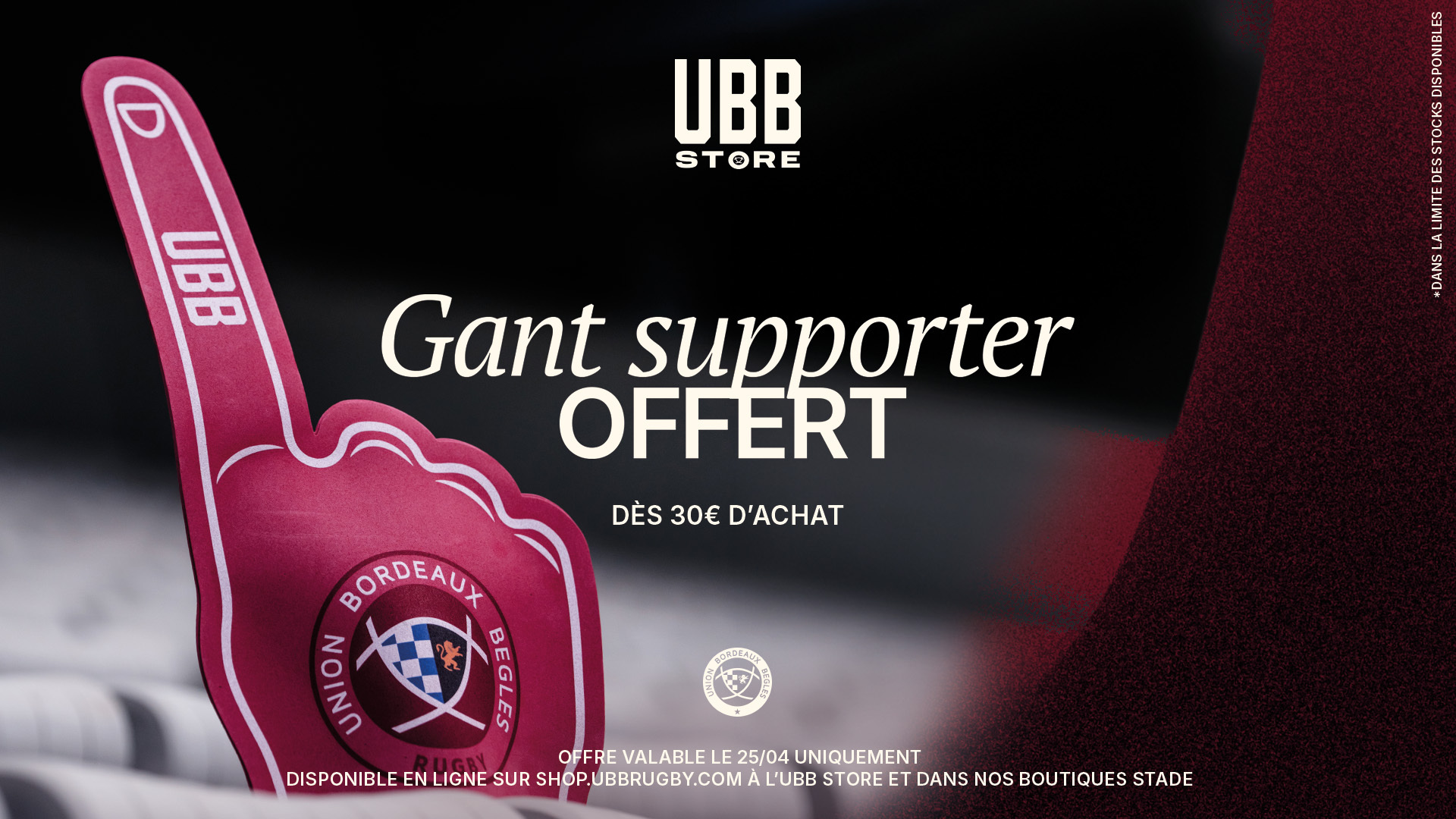 L'ensemble de nos collections UBB sera également présent dans nos 7 points de vente du stade dont notre grande boutique située au Village UBB.