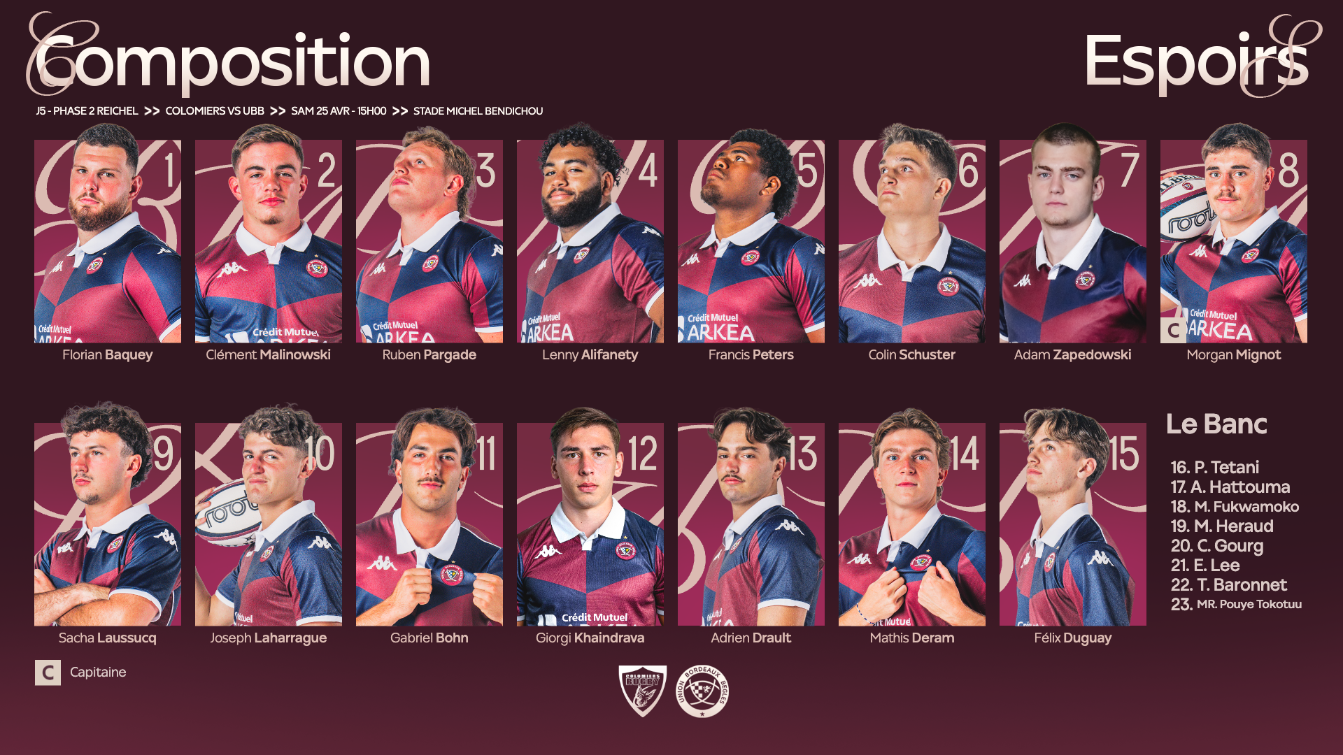 - Enfin, Gabriel Bohn et Adrien Drault font leur retour avec le groupe Espoirs, respectivement aux postes d’ailier et de deuxième centre.