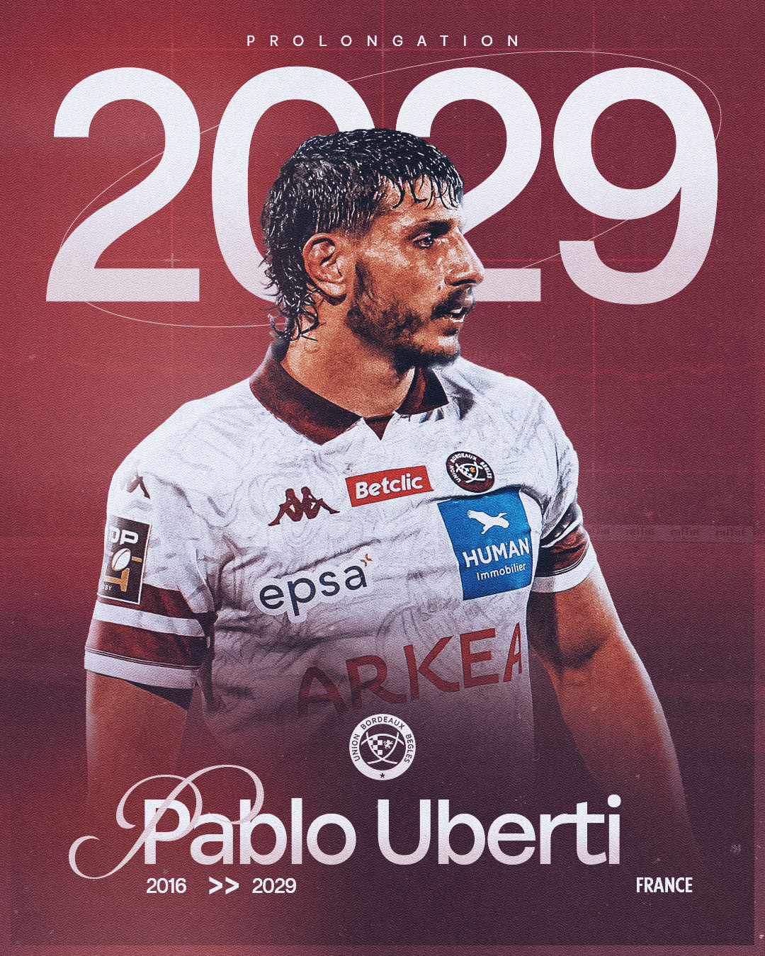 Notre centre/ailier Pablo Uberti prolonge son aventure en Gironde jusqu’en 2029 !