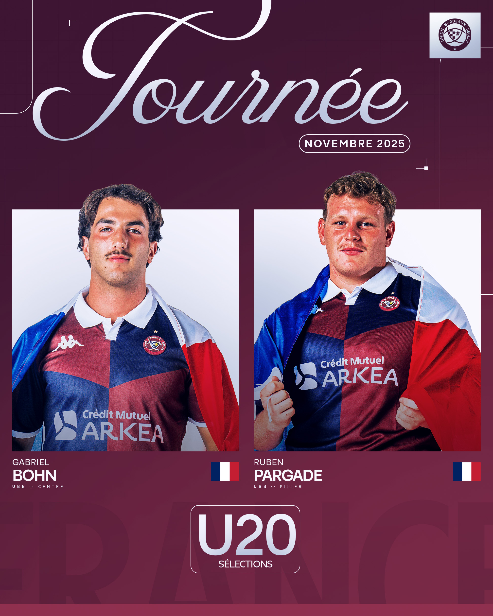 Gabriel Bohn a été appelé dimanche soir pour rejoindre ses cinq coéquipiers déjà sélectionnés pour le stage France U20, qui se déroulera du 27 octobre au 9 novembre 2025. Ruben Pargade rejoindra également l’équipe dès lundi prochain.