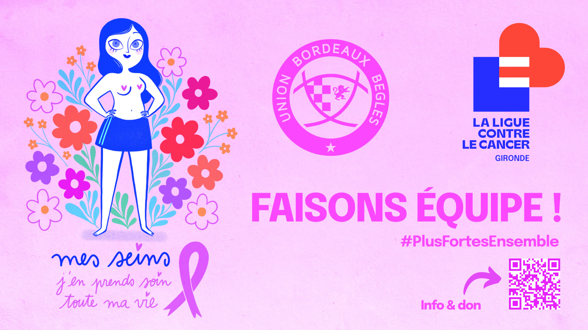 L'UBB et son fonds de dotation Coeur de rugby s'associent à la Ligue contre le Cancer de Gironde et au CHU de Bordeaux pour soutenir la lutte et la prévention contre cette maladie qui touche de nombreuses femmes chaque année.