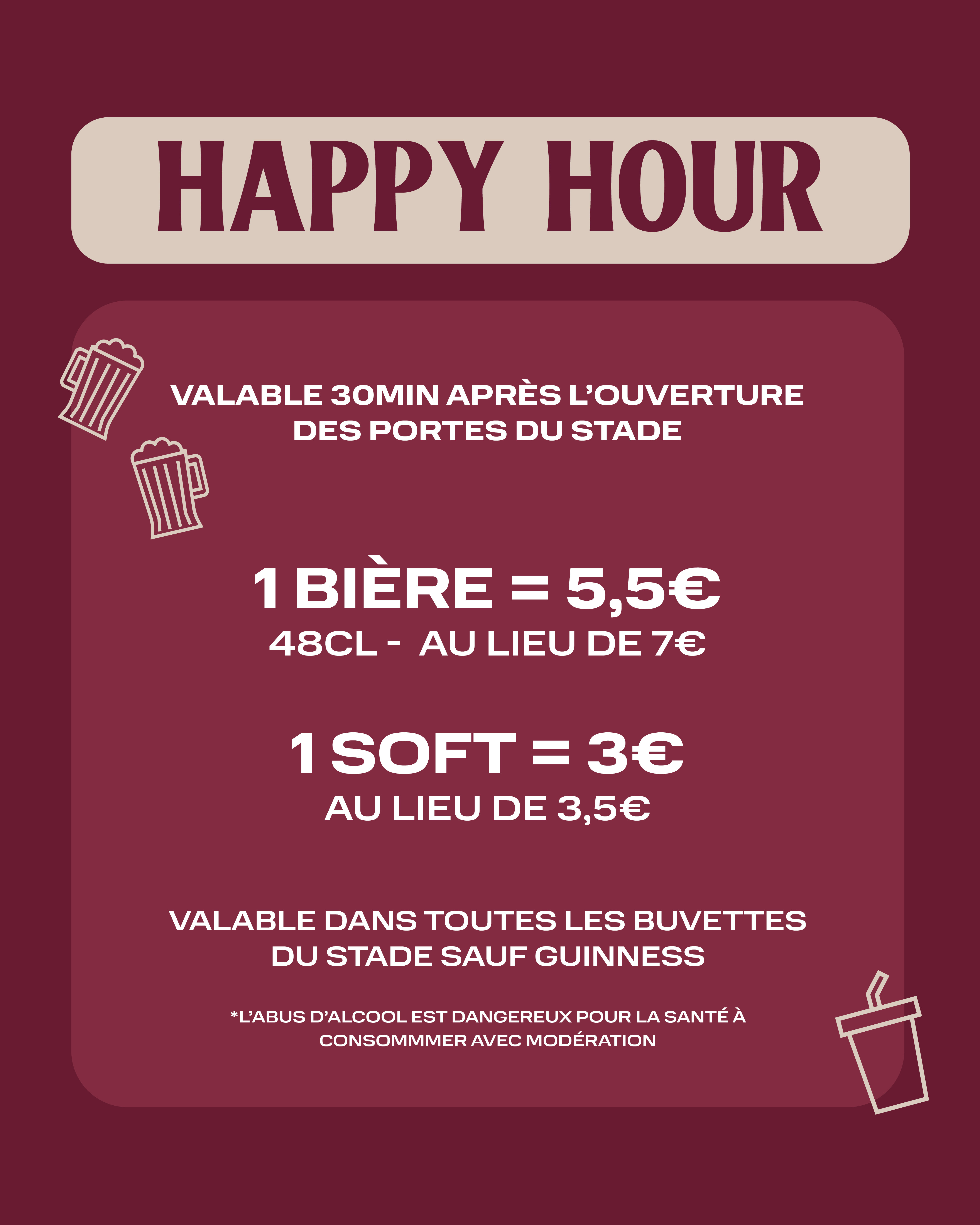 Pour votre confort à l'entrée du stade, pensez à anticiper votre arrivée au stade. Vous pourrez ainsi profiter pleinement de l'avant-match : échauffement des joueurs, annonce de la composition des équipes, animations...